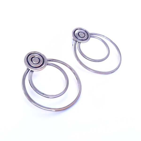 Aros que forman parte de mi colección Urbanizada. Caminar ciudades, contemplar sus formas me han inspirado a jugar con las líneas, las texturas y la geometría,